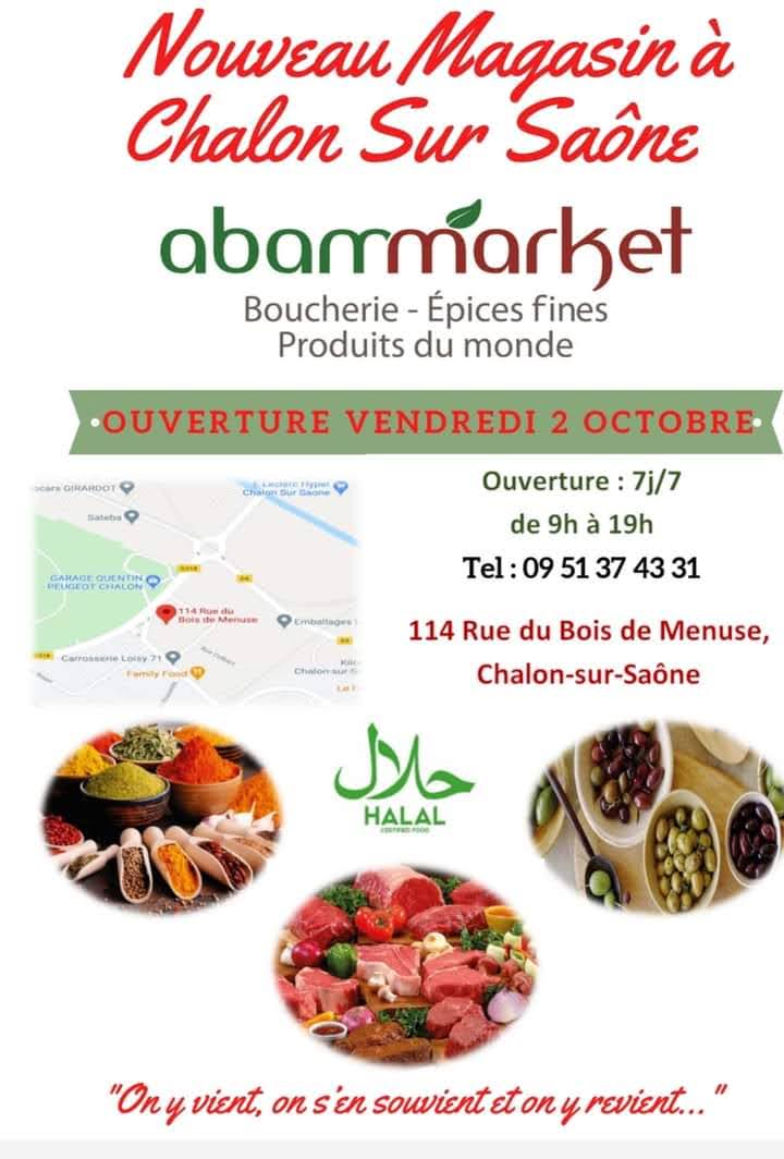 Voici toutes les informations sur le Boucherie ABAM MARKET Boucherie halal qui ce trouve au 114 Rue du Bois de Menuse, 71100 Chalon-sur-Saône (71). Sur cette fiche vous trouverez les photos, l'adresse, les horaires d'ouverture, le numero de téléphone et les avis clients.Vous pouvez églement rédiger un avis si vous le souhaitez en bas de page.