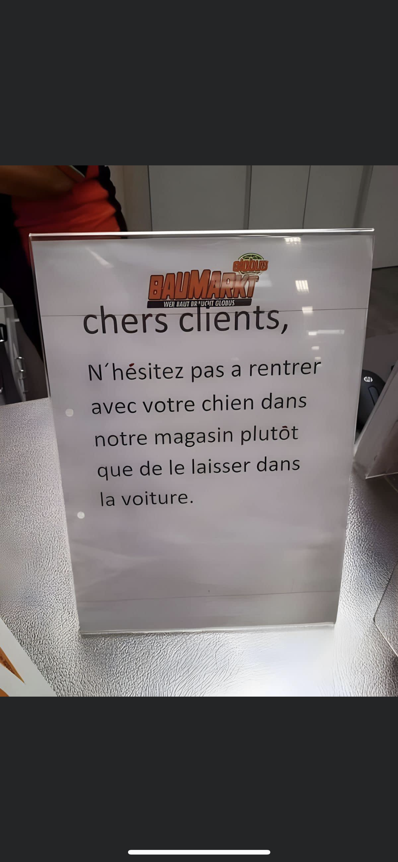 Dommage on peut pas mettre zero Je suis venu avec mes enfants en bas âge pour acheter 2-3 bricoles avec notre chiot qui a 2 mois et que je porté dans mes bras par une journée à plus de 30 degrés pour pas le laisser dans la voiture et là nous avons eu le plaisir de nous faire interpeller pas une dame je pense que c’est l’employée du mois mais tout les mois enfin ptete dans sa tête Pour nous demander de sortir du magasin car les chiens sont interdit car ils vendent de la nourriture (ils vendent de la nourriture comme ils vendent de la peinture le rayon d’à côté)je lui explique que il fait chaud et que je porte le chiot elle veut rien savoir notre employé du mois et nous demande donc de sortir ce que nous avons fait avec les enfants on était choqué par ce manque d’empathie envers les animaux un peu moin par l’incompétence de la dame PRENEZ EXEMPLE SUR D’AUTRE ENSEIGNE