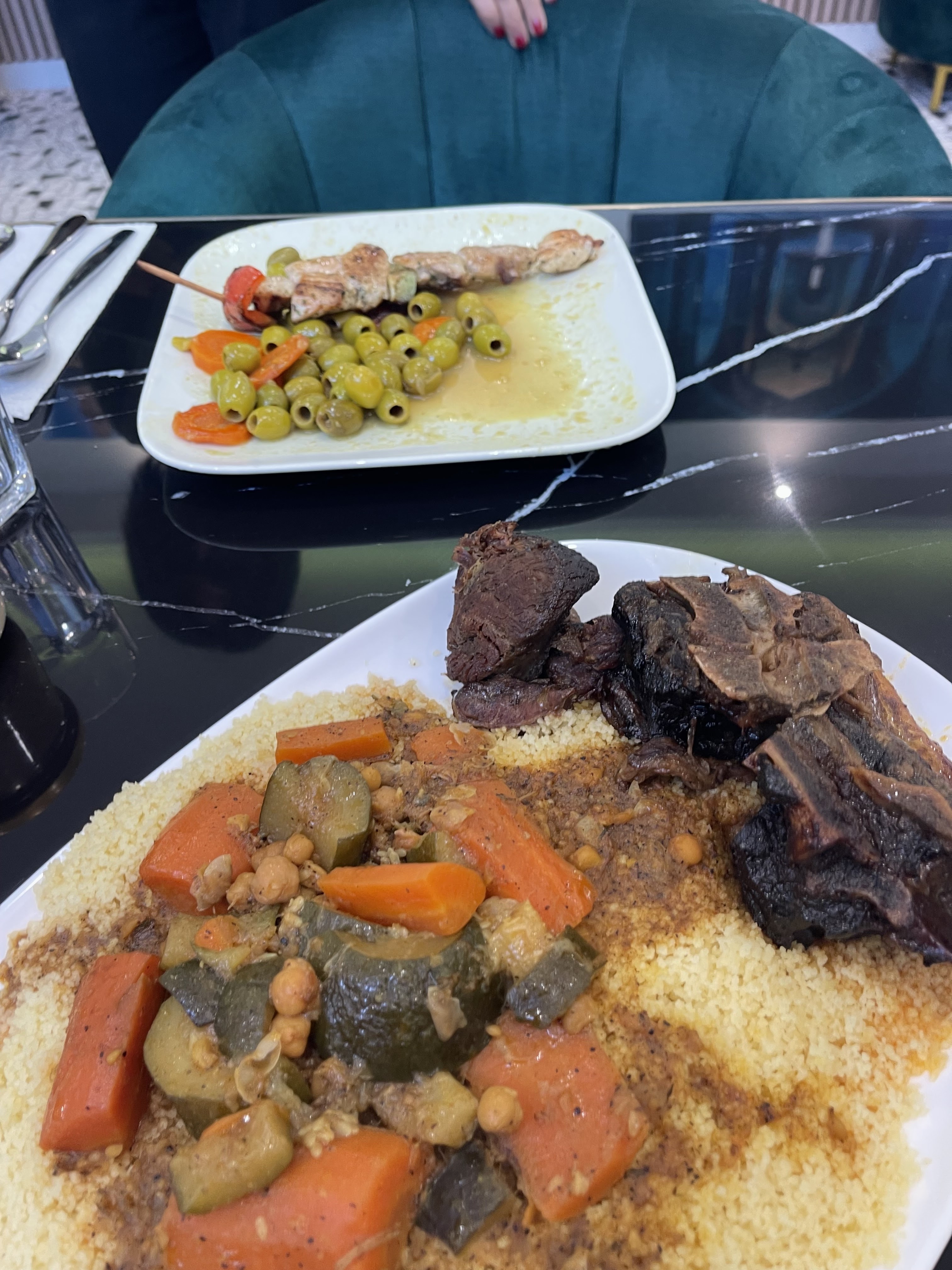 On peut choisir sa viande ou un plat préparé maison et consommer sur place. Tout très bon. Merci pour l’accueil très chaleureux d’ Akim .