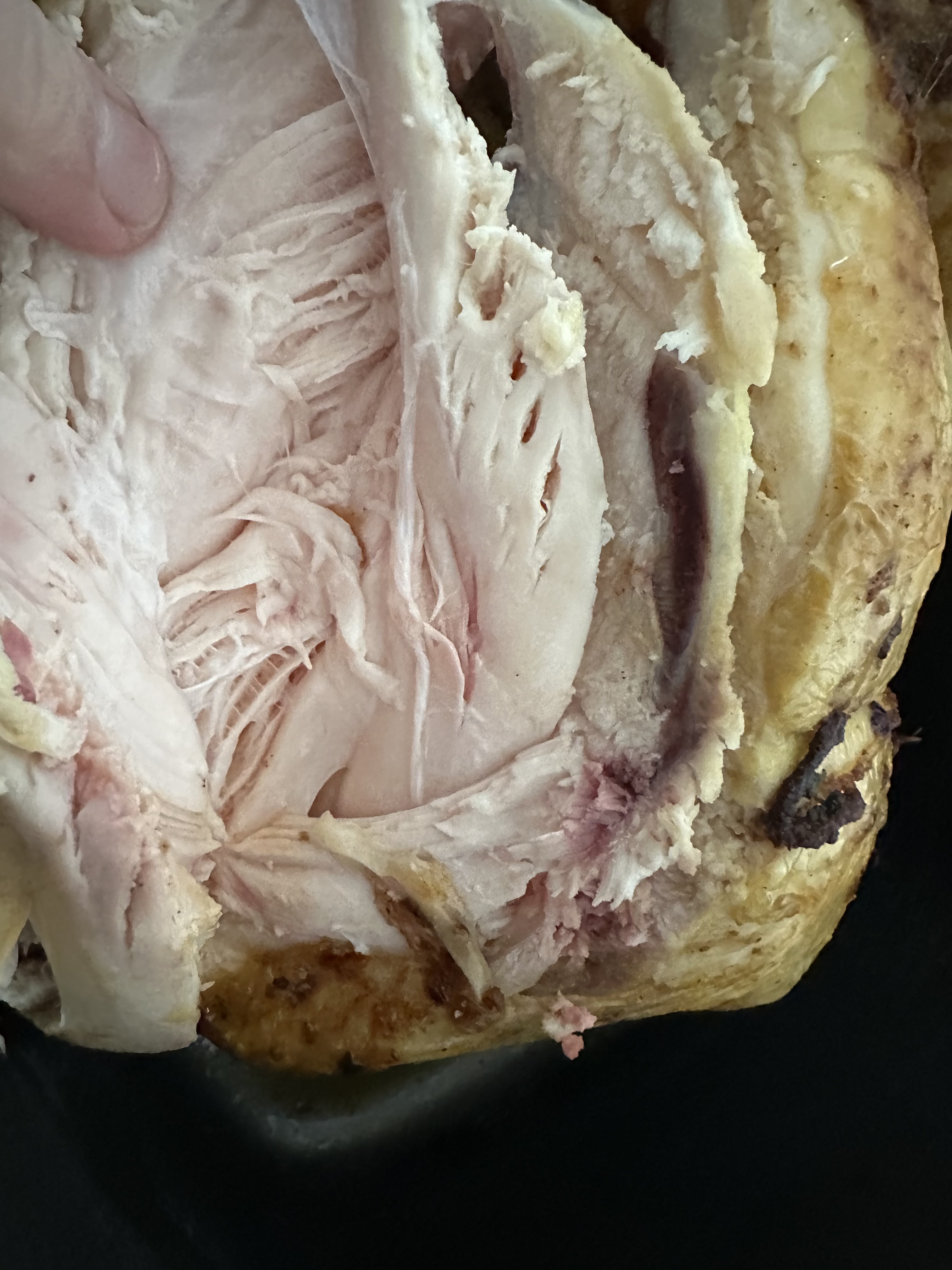 Aujourd’hui, achat d’un poulet rôti qui, au moment de servir, nécessite obligatoirement un retour au four pour une cuisson. Le poulet était sur la broche au moment de son achat 20 minutes avant sa présentation à table. Lors de la découpe, viande rosée et froide constatée, nous contactons la vendeuse qui déclare un problème de broche en raison du froid…