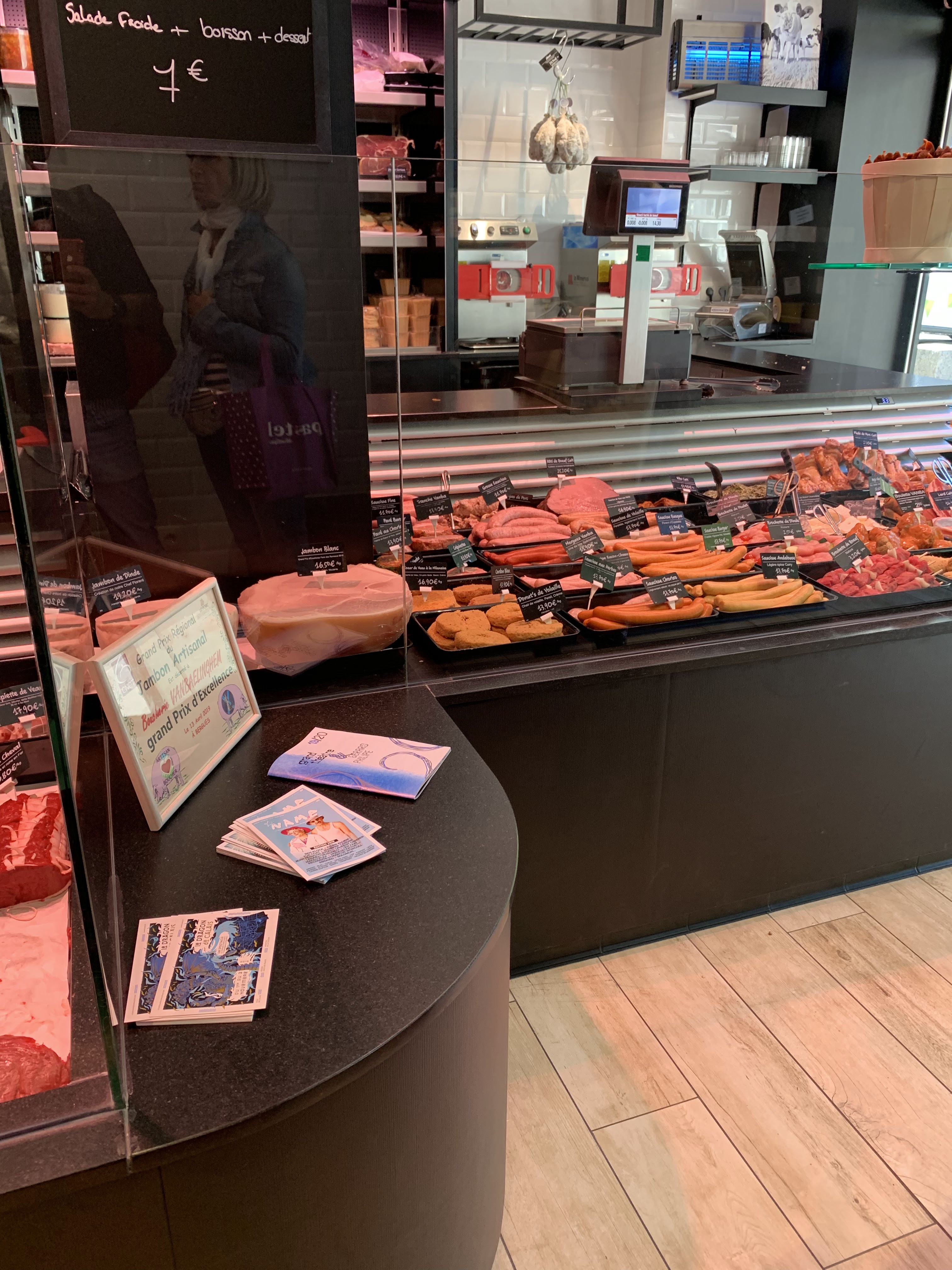 J'ai l'habitude d'acheter dans cette boucherie que ce soit sur coudekerque branche que sur Dunkerque sachant qu'avec les fêtes il y avait énormément de monde aux 2 boutiques je me suis reporté sur la nouvelle boutique qui se trouve dans le centre commercial Monoprix centre-ville de dunkerque très belle étalage comme les autres boutique j'ai commandé deux rôti de dinde à la farce de Noël j'ai bien demandé au jeune homme s'il n'y avait pas de champignons il me l'a confirmé à deux fois je suis allé chercher le samedi et surprise au moment du repas quand le rôti est est cuit c'était une farce aux champignons quelle déception sachant que la moitié de mes convives n'aime pas les champignons 😔😔😔. Il faut savoir également il y a tellement de vente et donc du rendement du rendement du rendement !! Les plats sont tellement vite fait des choses manque lors des achats un cassoulet manque saucisse ,, et le poulet sauce chorizo il était pas mariner du tout servi comme ça avec de la sauce au-dessus simplement je suis très déçu... Je conseille pour eux de faire des améliorations futur surtout sur le personnel l impression au ils sont sous pression et manque de tact. Un sourire c est gratuit 😊😉