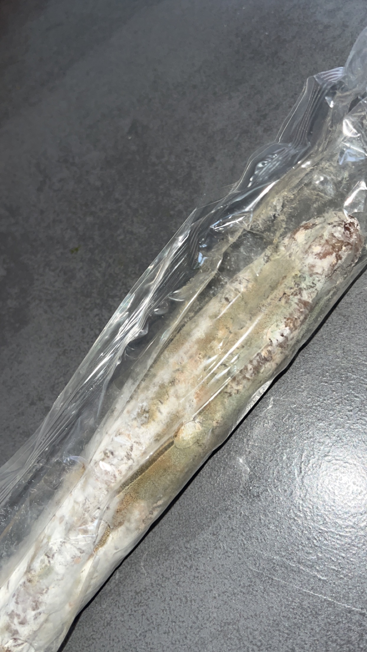 J’ai acheté un saucisson dans un emballage en plastique avec au bout un papier enroulé sous le papier surprise !! Saucisson moisi !
