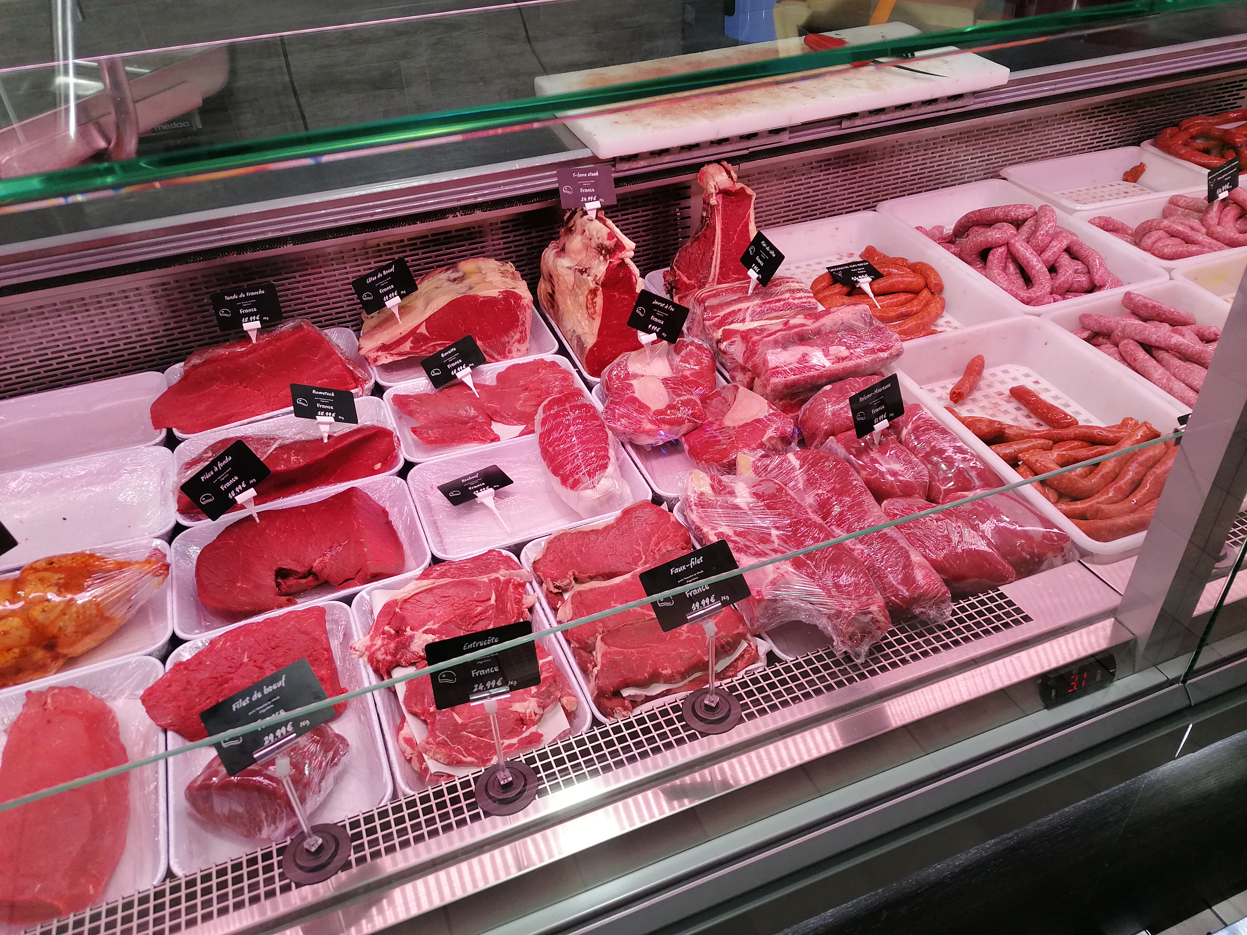 Bel étalage de viande accueil sympathique.