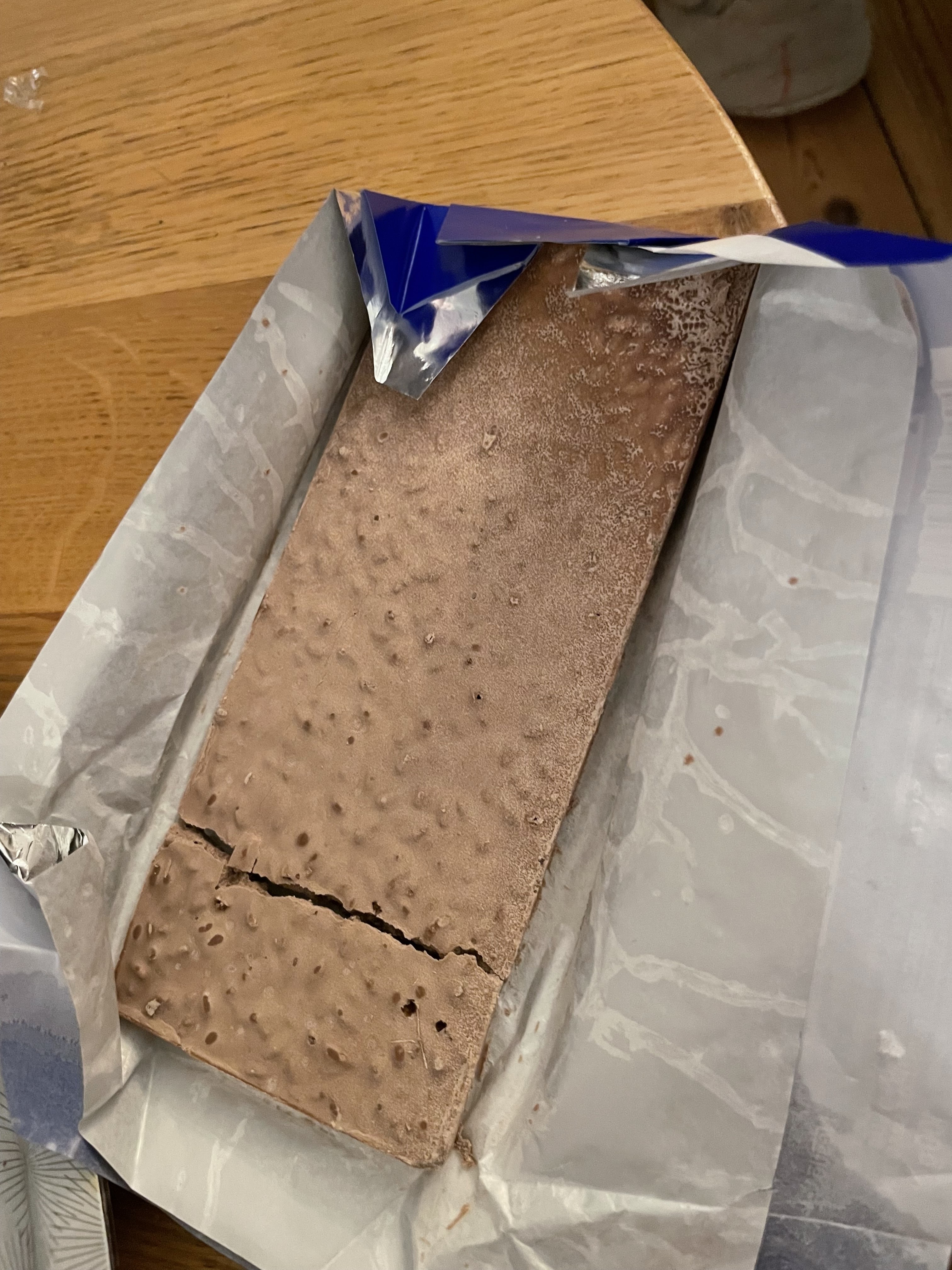 Nombreux produits visiblement heurtés à l’extérieur et qui s’avèrent moisis à l’intérieur (2 pots de confiture, 1 compote), au moins 2 pots de Nutella 800g dur comme de la roche, soit disant a cause de froid (le dernier il y a quelques semaines…). Et lors de notre dernière commande 2 tablette Crunch très suspectes, cf photos… 2 mails au service client, aucune réponse… Honteux.