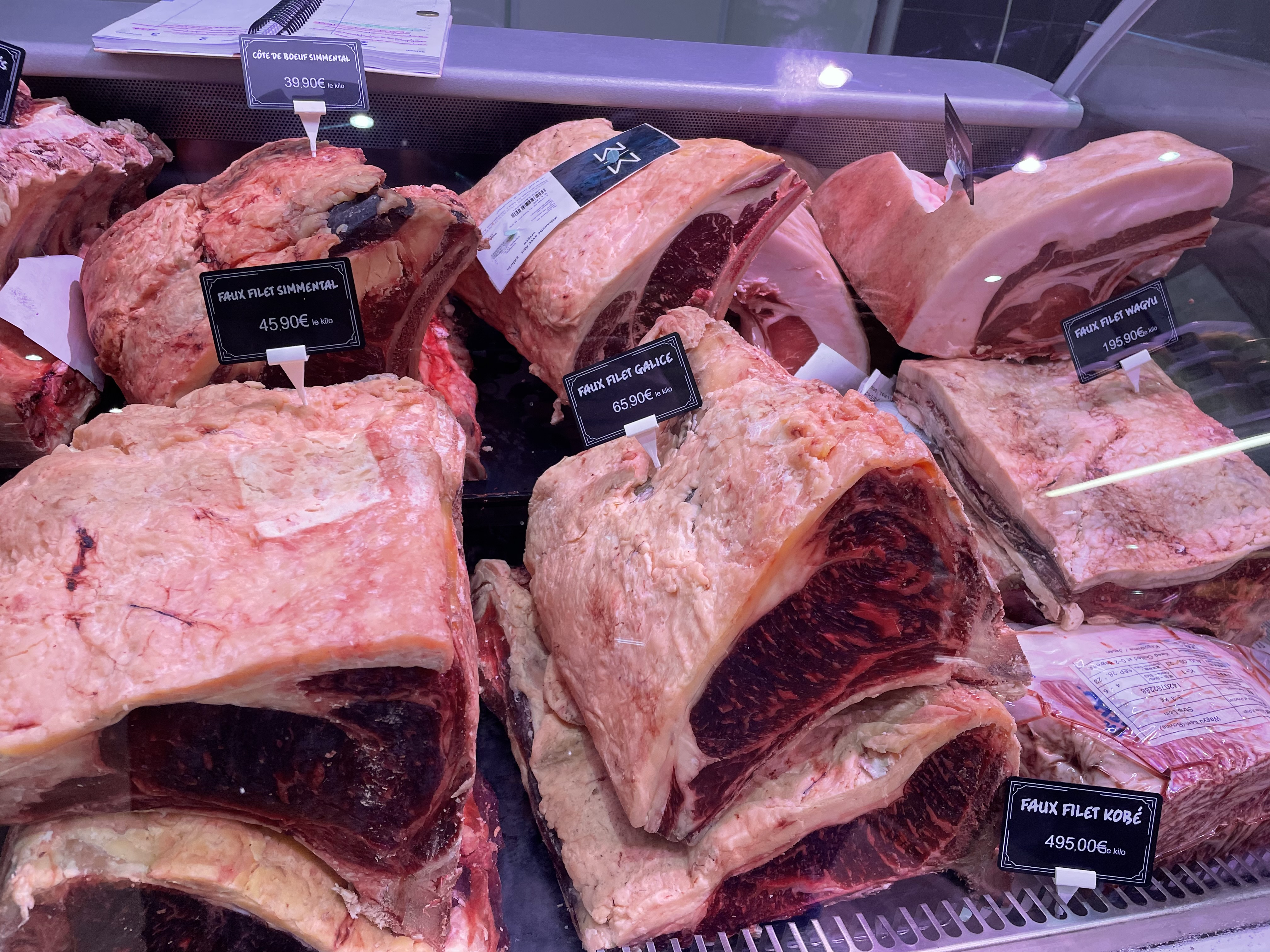 Bonjour, Nous nous y sommes rendus par hasard. Excellente surprise ! Lieu très accueillant, propre et étales très bien garnis. Nous avons été servis par la patronne. Très sympa ! Nous lui avons pris une cote blonde d'aquitaine maturée (60 jours), un faux-filet de wagyu (pour la découverte) et un simple faux filet. J'ai été étonnée de la préparation des pièces de viandes demandées : entame systématiquement enlevée, gras retaillés, parties sèches ou oxydées retirées et os retaillés et grattés. Un vrai travail de boucher comme on n'en voit plus! Et que dire de la qualité de la viande ! Vous payez un peu plus cher qu'ailleurs par contre c'est sans comparaison ! Le simple faux-filet était d'une tendreté et très savoureux. Et la cote maturée m'a fait réaliser que ce que je croyais maturé avant était en fait faisandé... Je suis à plus d'1h de route de cette boucherie mais je n'hésiterai pas à faire la route pour manger de la bonne viande ! Je recommande vivement !!!!