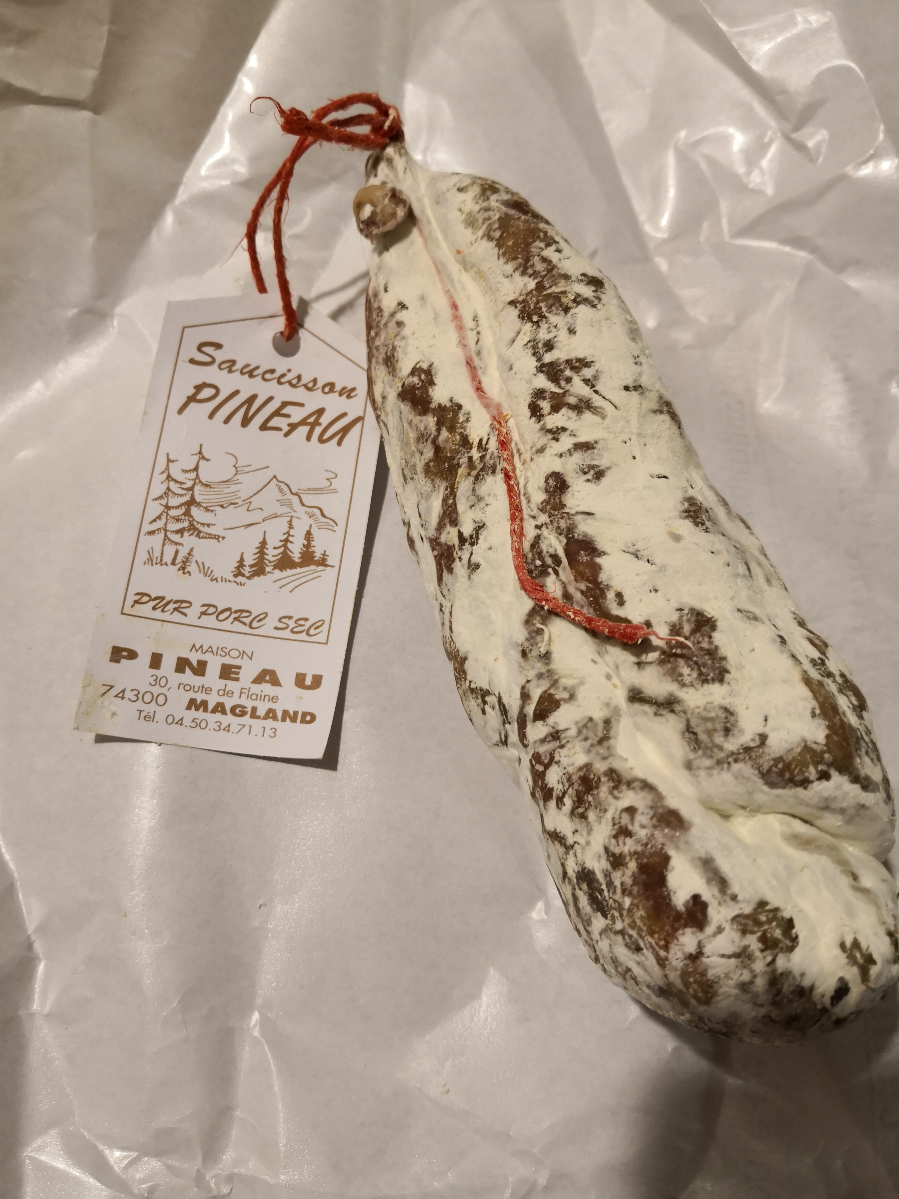 J'ai acheté le saucisson fumé et mon équipe d'entrepreneurs et d'ingénieurs l'a beaucoup apprécié. En fait, c'était le premier repas sur la table qui était vide. Je ou mieux, nous pouvons le recommander vivement. Pour notre déjeuner de Noël, chacun a apporté quelque chose de spécial des régions françaises et j'ai eu la chance d'être à Magland pour me procurer cette saucisse. Passez un bon Noël 2014 :-)