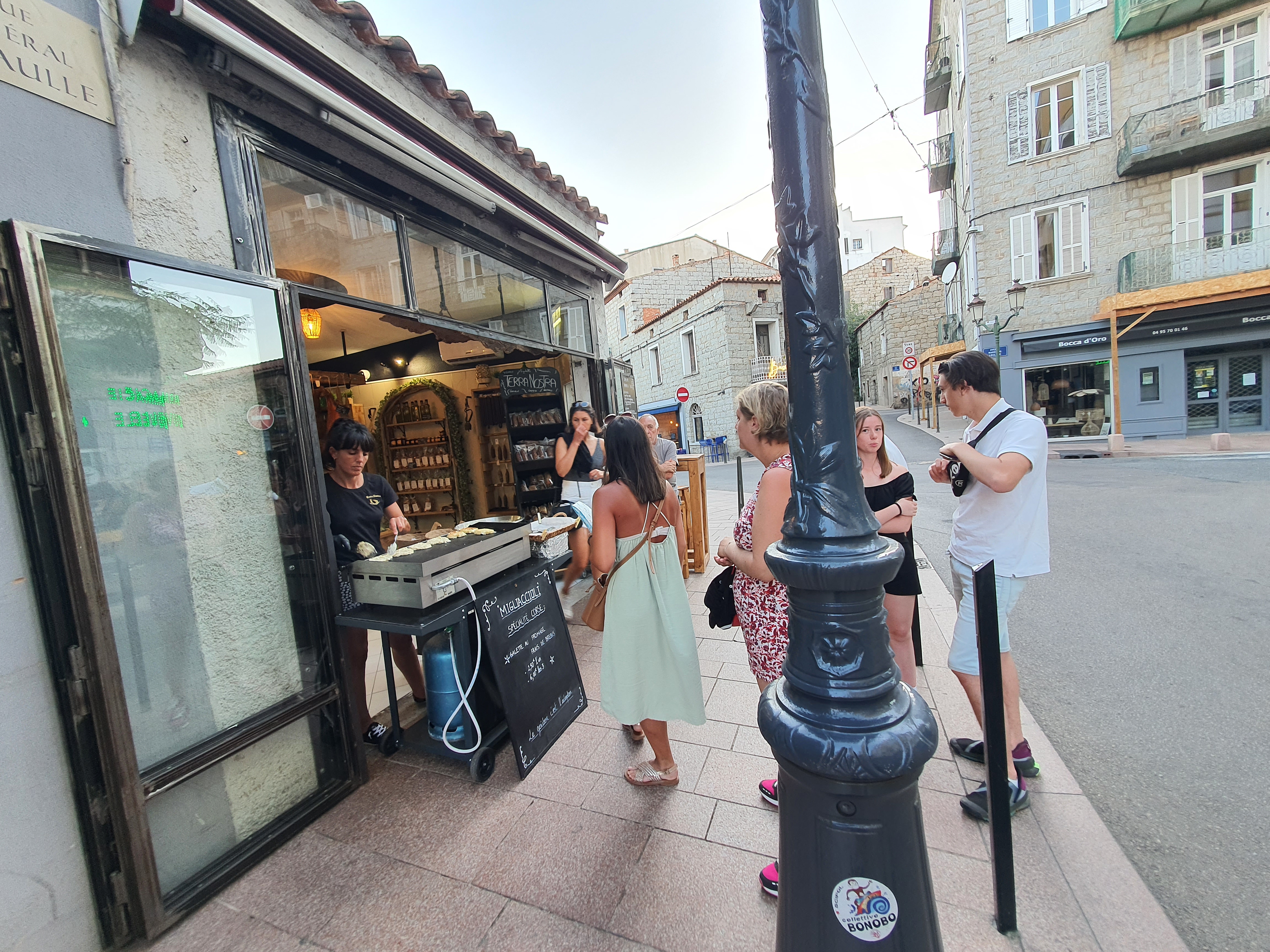 Meilleur endroit de Porto Vecchio pour prendre un sandwich Coppa ou Lonzu. Haut? Les migliaccioli : une galette au fromage de brebis frais (sorte de blini corse) à dévorer avec un joli segment de Figateli. Et quel accueil !!! Franchement, la Corse est un pays plus beau avec Terra Nostra. Allons-y!!!