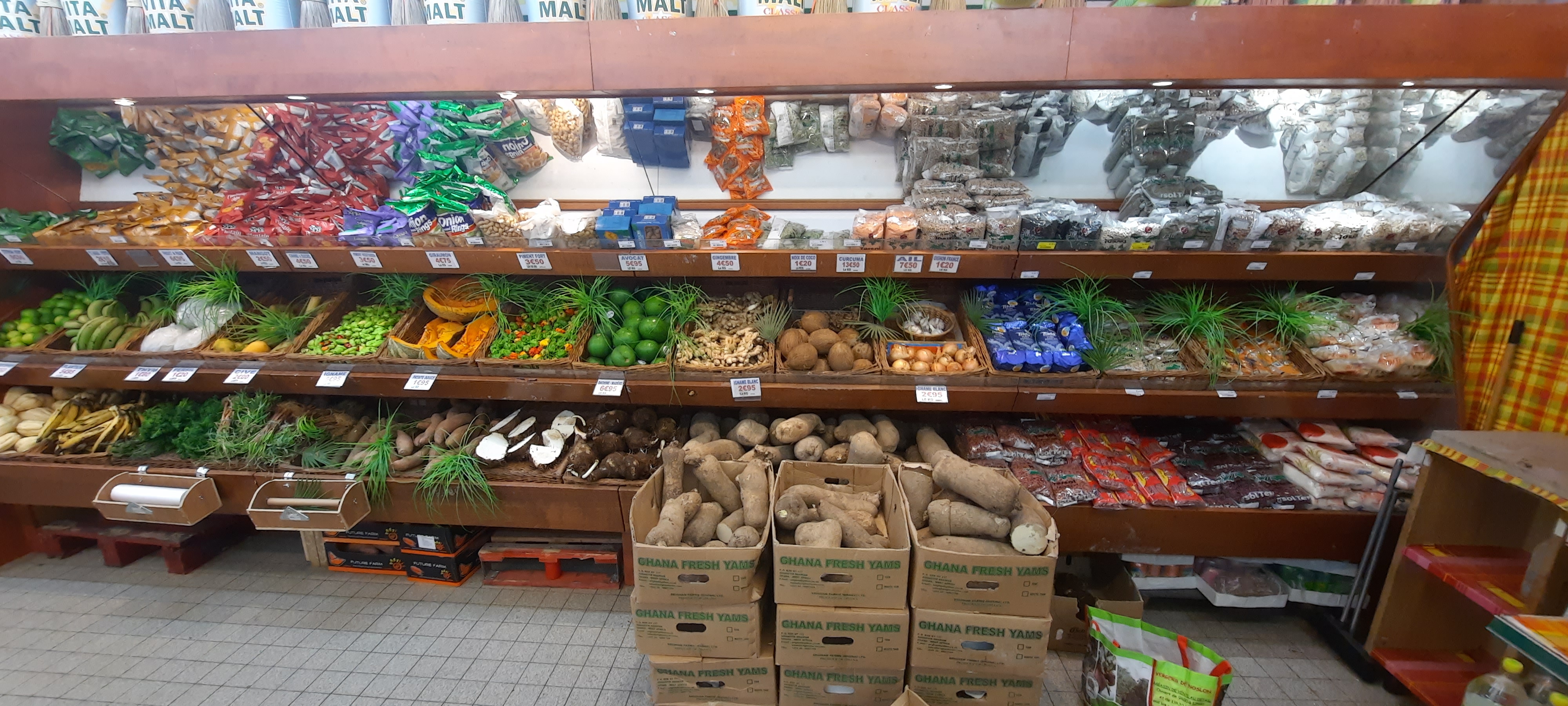 Les prix sont un peu élevés concernant certains articles mais dans la globalité, on n'a pas vraiment à ce plaindre et il y a beaucoup de choix de produits. On retrouve les Antilles car il y a diverses provenances.